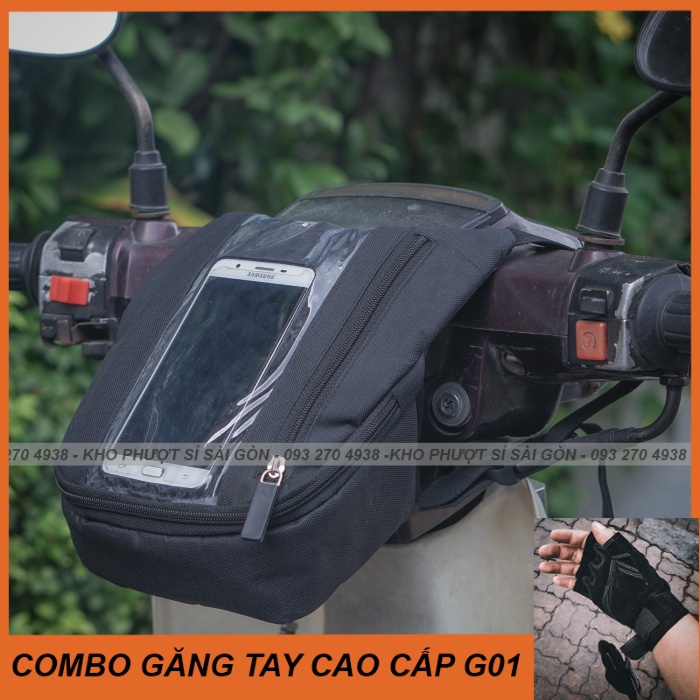 Kho Sỉ SG - VIDEO TEST CẢM ỨNG Túi Grab dọc treo đầu xe máy đựng điện thoại kèm găng tay SWAT G01 - Túi treo xe máy