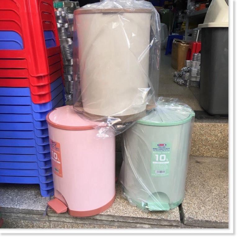 [KHO SỈ] Thùng rác bật tròn 10l Song Long có nắp đậy trợ khí, kiểu dáng sang trọng - 2766