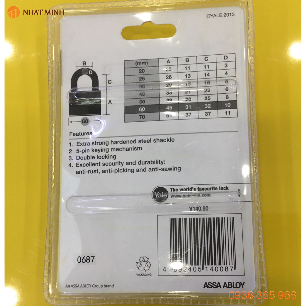 Nhà cửa & Đời sống > Dụng cụ & Thiết bị tiện ích > Dụng cụ > Kìm || Khóa bấm Yale V140 dùng tốt trong điều kiện ngoài trời, ẩm ướt và chịu bẩn caoCòn hàng