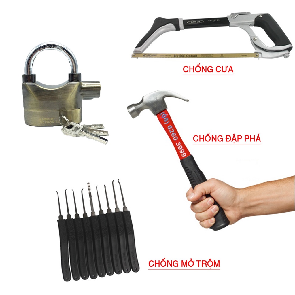 - Khóa cơ động, dễ tháo lắp, có 2 cơ chế cảm biến rung tần số 110db và không rung khi cần thiết