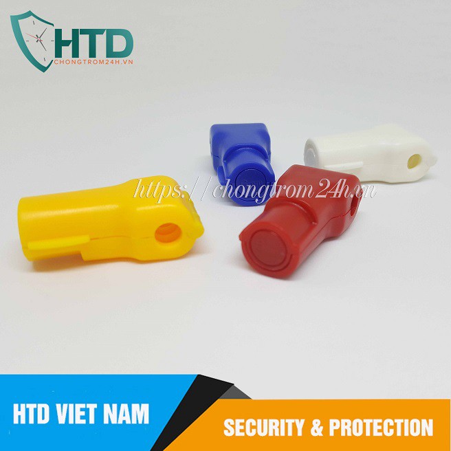 Khóa chặn chống trộm đầu móc treo phụ kiện có nhiều màu sắc: trắng, đỏ, vàng, xanh giúp cho cửa hàng phụ kiện có nhiều lựa chọn để phù hợp với không gian trưng bày cũng như phong thủy của cửa hàng.