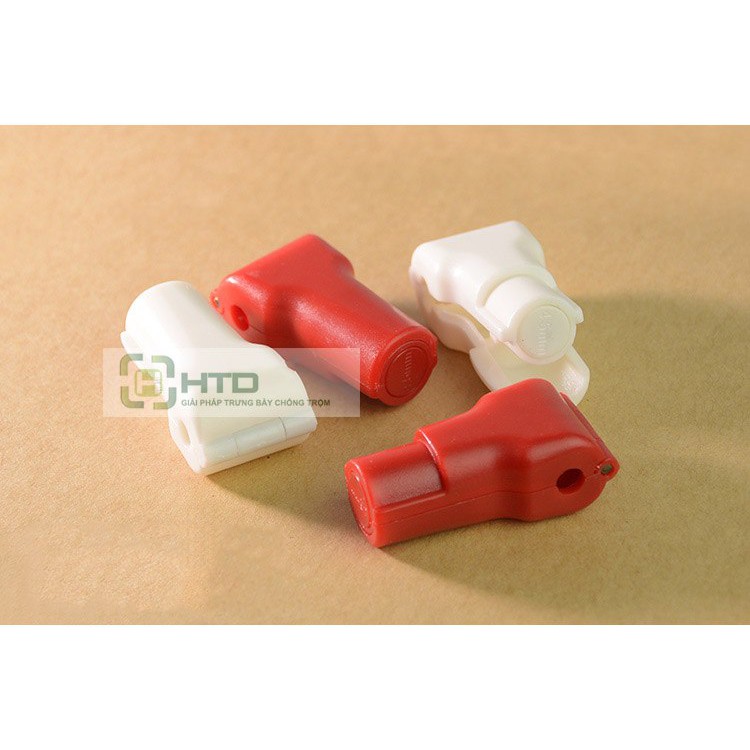 Khóa chặn chống trộm có nhiều màu sắc: trắng, đỏ, vàng, xanh giúp cho cửa hàng phụ kiện có nhiều lựa chọn để phù hợp với không gian trưng bày cũng như phong thủy của cửa hàng.