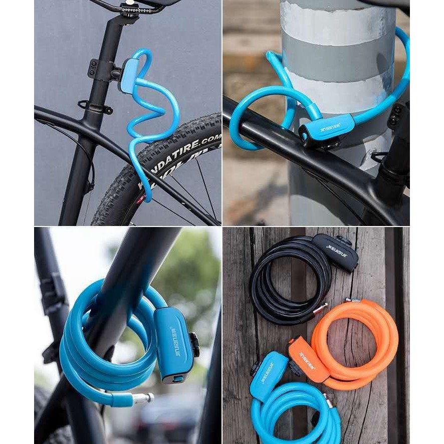 Loại khóa dây xe đạp, khóa bằng chìa. Đường kính cáp 12mm, dài 1200mm, các rãnh khóa được sẻ rãnh đặc biệt đảm bảo trơn, nhạy, độ bền cao, không bị trùng khóa trong một lô sản xuất, củ khóa thiết kế đẹp, tinh tế, chắc chắn.Mầu sắc: màu đen