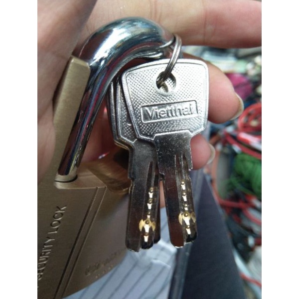 🔒Khóa cửa chống cắt đồng bấm của Công ty TNHH Khóa Việt Thái được làm hoàn toàn bằng chất liệu đồng nguyên chất bền bỉ ko bao giờ han gỉ.🔐Khóa có 4 chìa, là chìa vi tính rãnh chìm vô cùng khó để bắt chước chìa, khóa bấm được ko