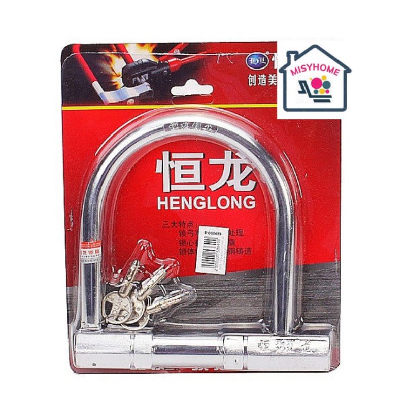 Nhà cửa & Đời sống > Bảo hộ gia đình > Khóa, ổ khóa || Khoá chữ U chống trộm chống cắt inox xe máy xe đạp Henglong hCòn hàng