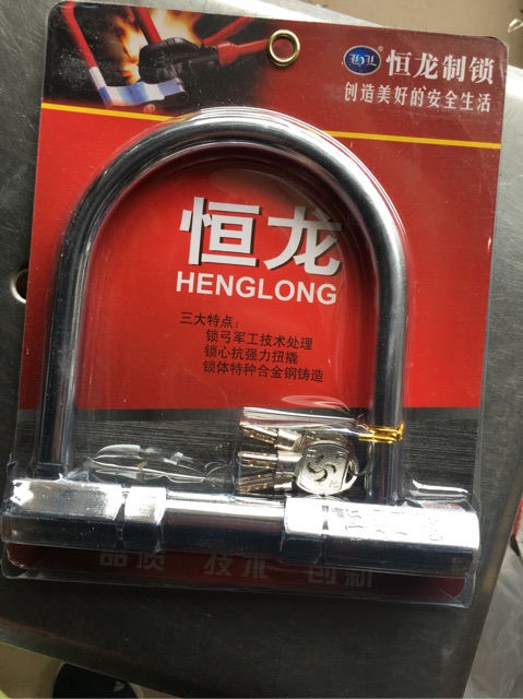 Khoá chữ U chống trộm làm bằng thép đặc không gỉKhoá chữ U HengLong đại có 3 chìa