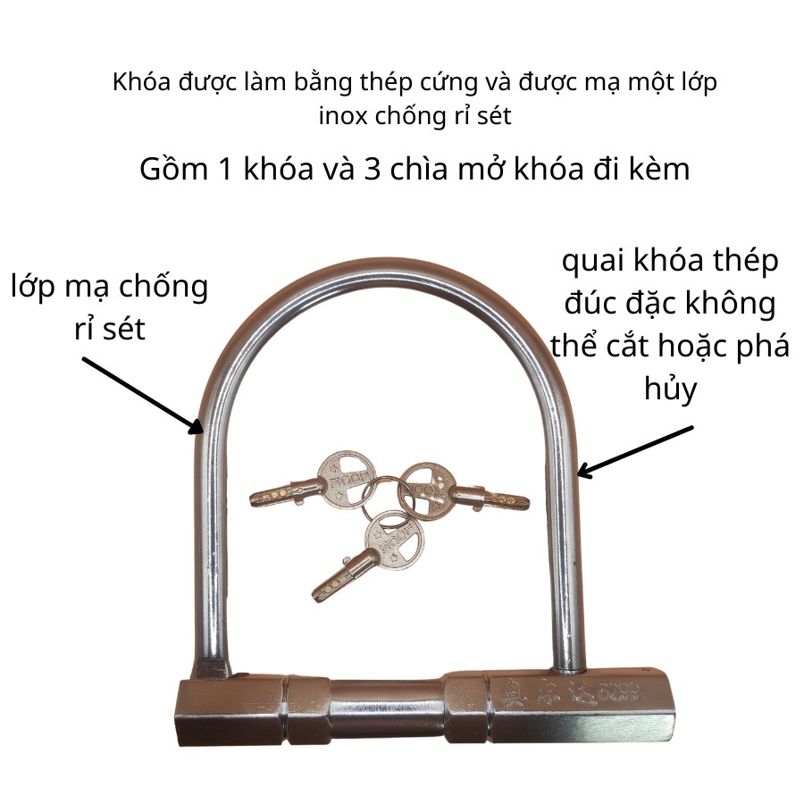 Giới thiệu Khóa chữ U chống trộm xe máy . Khóa chống cắt mạ inox AOERDA