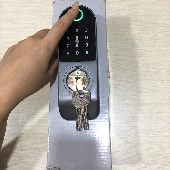 Mở khóa bằng 100 vân tay, 300 thẻ từ, 1 mã số, 2 chìa khóa cơ từ bên ngoài và bên trong