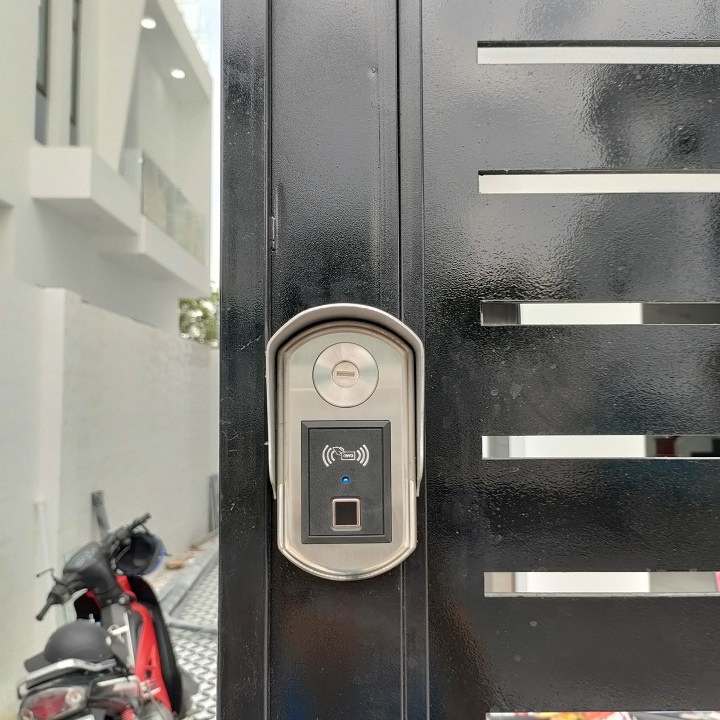 - Chức năng: Mở cửa bằng vân tay, thẻ , chìa cơ , remote