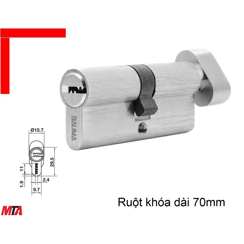 KHÓA CỬA BAUMA HAFELE 916.87.826 RUỘT KHÓA ĐẦU VẶN ĐẦU CHÌA