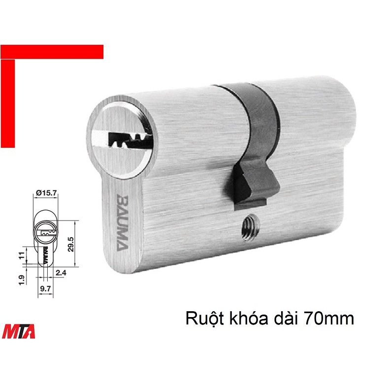 KHÓA CỬA BAUMA HAFELE 916.87.827 RUỘT KHÓA ĐẦU 2 ĐẦU CHÌA DÀI 70MM