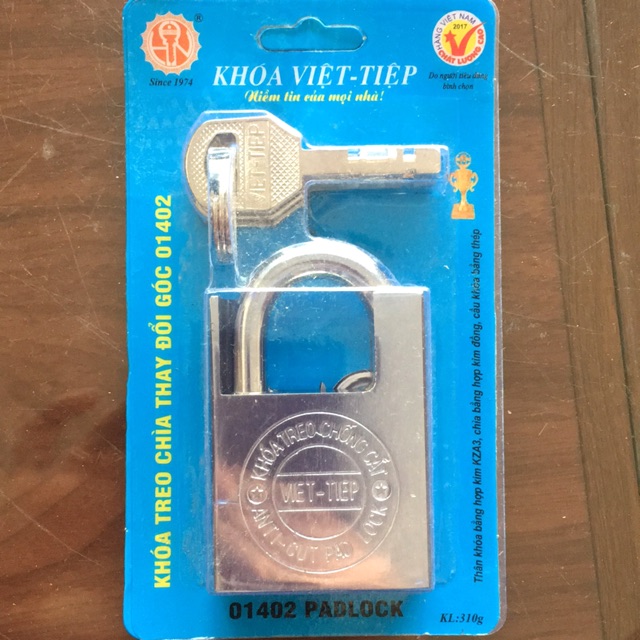 Khóa treo Việt Tiệp chìa chống cắt inox cầu 8 mm Việt Tiệp 01402KC23: Khóa cửa treo bấm chống cắt inox cầu 8 mm Việt Tiệp