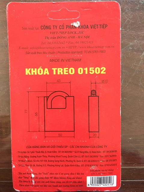 Thân ổ khoá được làm bằng hợp kim chống cắt nguyên khối , móc khoá làm bằng hợp kim cao cấp chiệu được nhiệt độ , độ ẩm của môi trường và thời tiêtChắc chắn , sử dụng bền lâu đã được nhiều người sử dụng và tin dùng