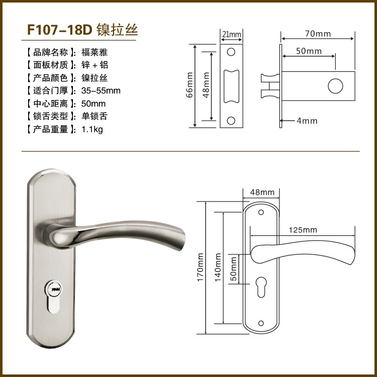 - Chiều rộng thân khóa và ổ khóa 48 mm