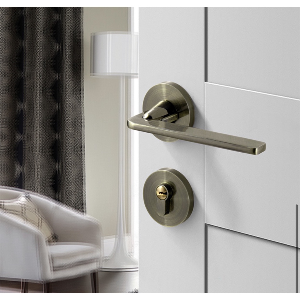 Khoá Cửa Gỗ Tay Gạt Cửa Thông Phòng Xanh Đồng Xước F15-087