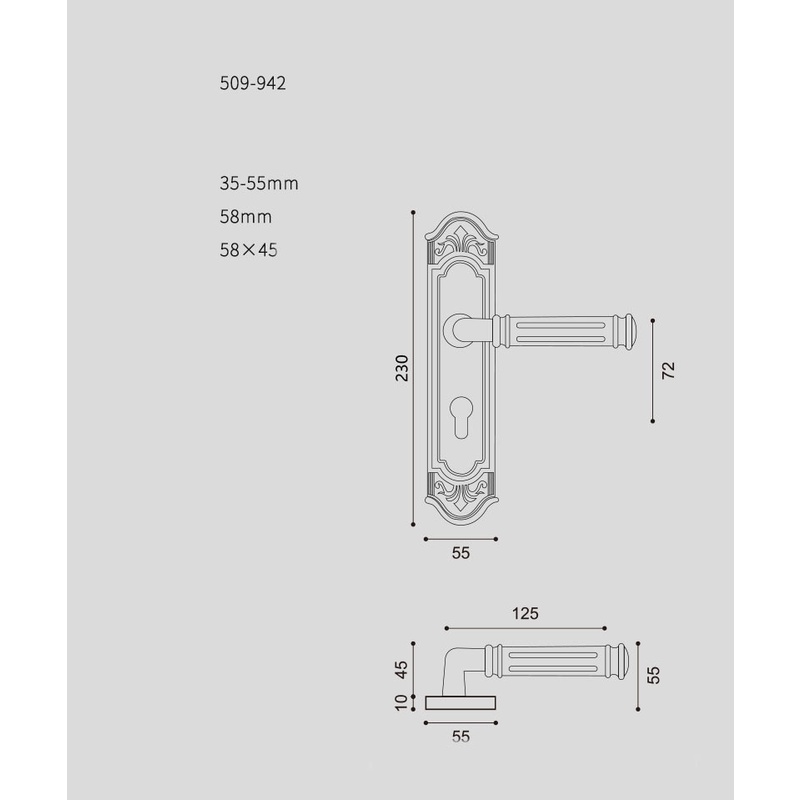 Khoá Cửa Gỗ Tay Gạt Tân Cổ Đồng Xước Xanh Vàng Mờ 509-942- Màu sắc: