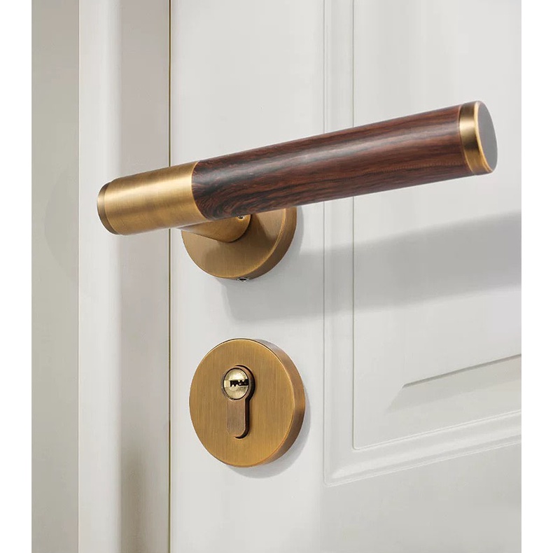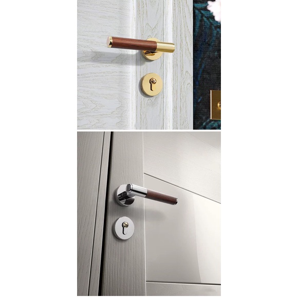 Khoá Cửa Gỗ Tay Gạt Thân Rời Vân Gỗ Cửa Thông Phòng Decor Đẹp
