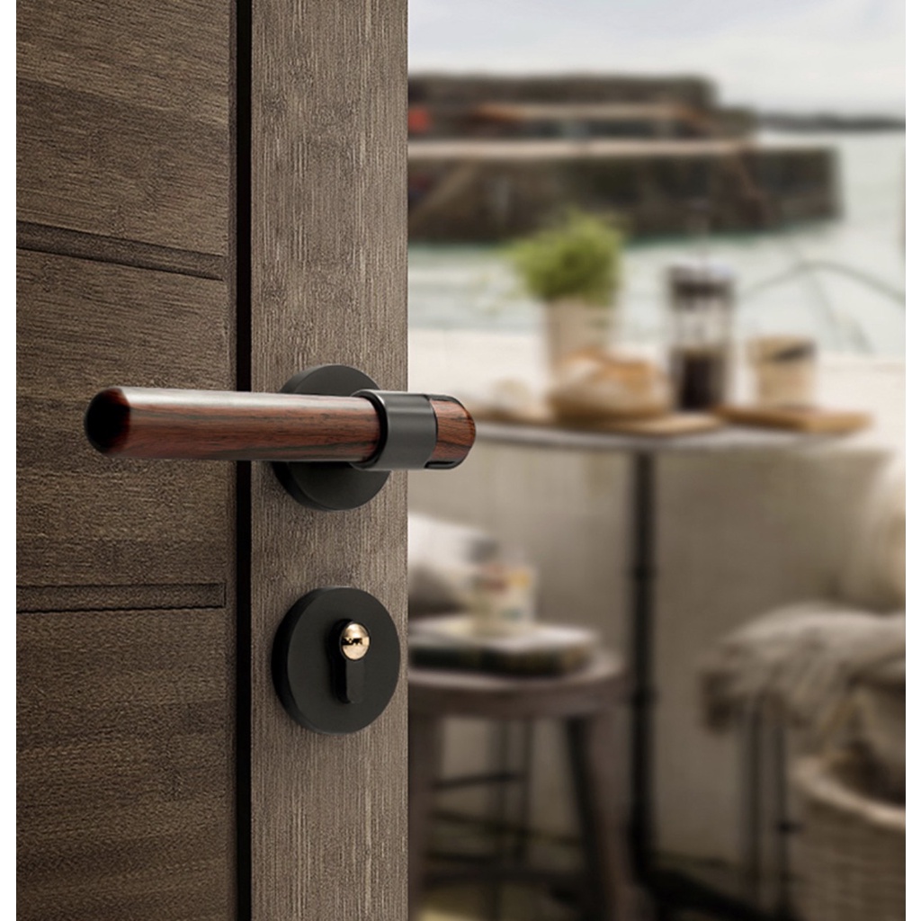 Khoá Cửa Gỗ Tay Gạt Thân Rời Vân Gỗ Cửa Thông Phòng Decor Đẹp- Màu sắc: