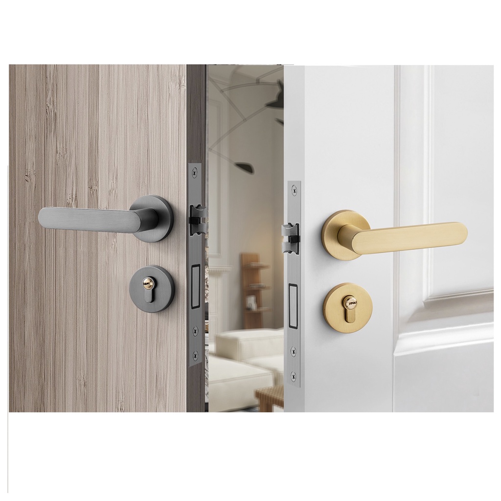 Khoá Cửa Gỗ Tay Gạt Thân Rời Cửa Thông Phòng F15-B11- Màu sắc: Vàng Xước Mờ, Xám NgọcTrai