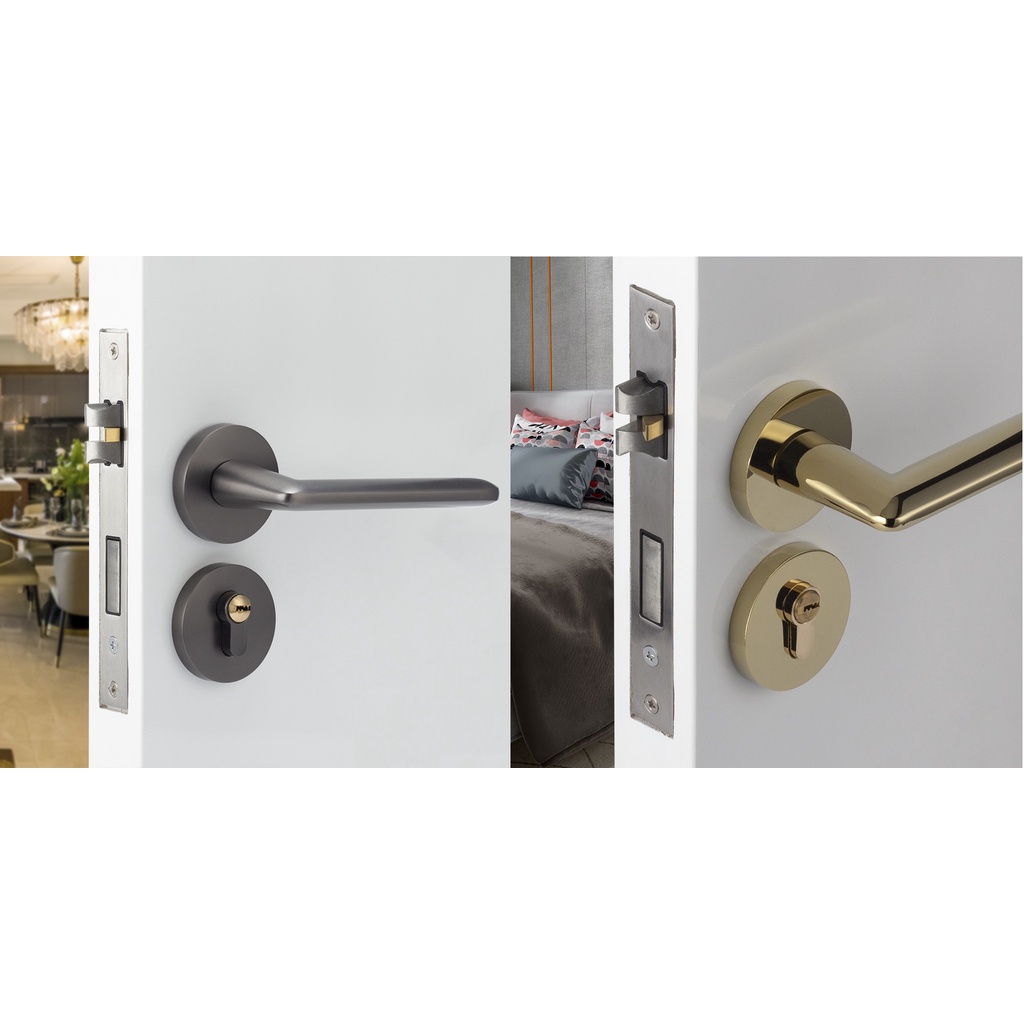 Khoá Cửa Gỗ Tay Gạt Vàng PVD, Xám Thân Rời Cửa Thông Phòng Ngủ 0203
