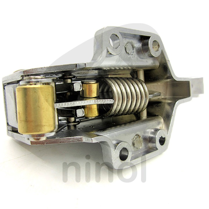 - Lẫy khóa thiết kế dốc nghiêng ở mặt ngoài để chốt trượt vào, và hõm cong nhẹ ở mặt trong để giữ chốt, không cho chốt trượt ra ngoài.
