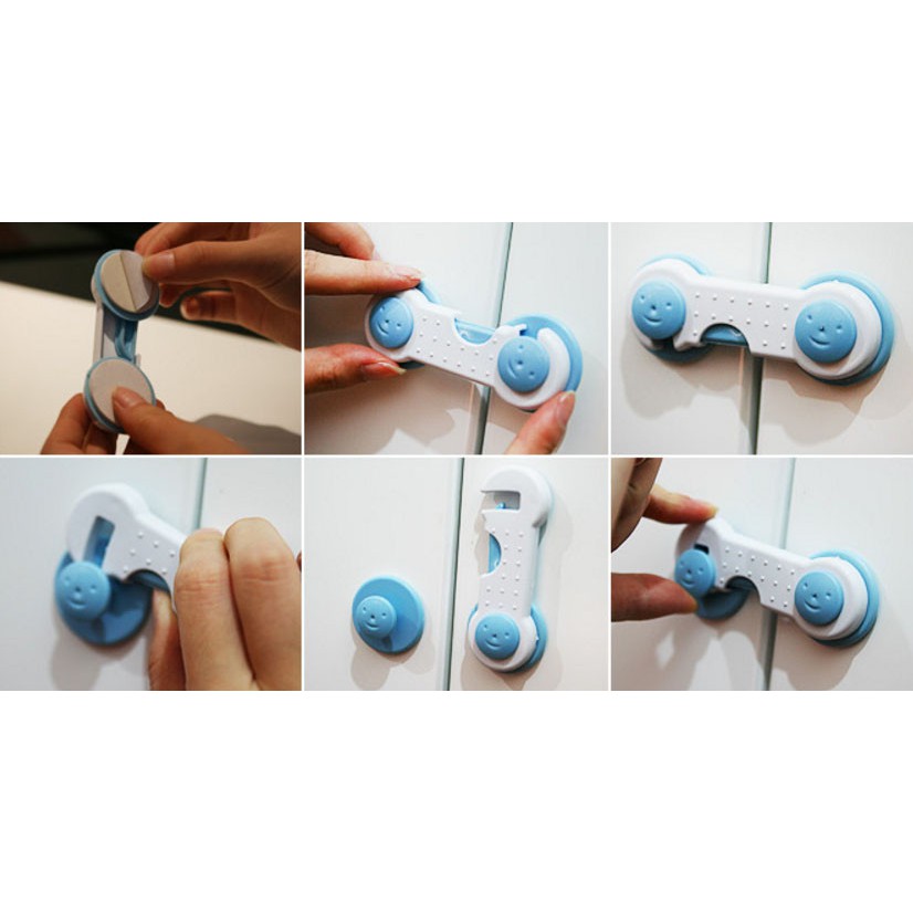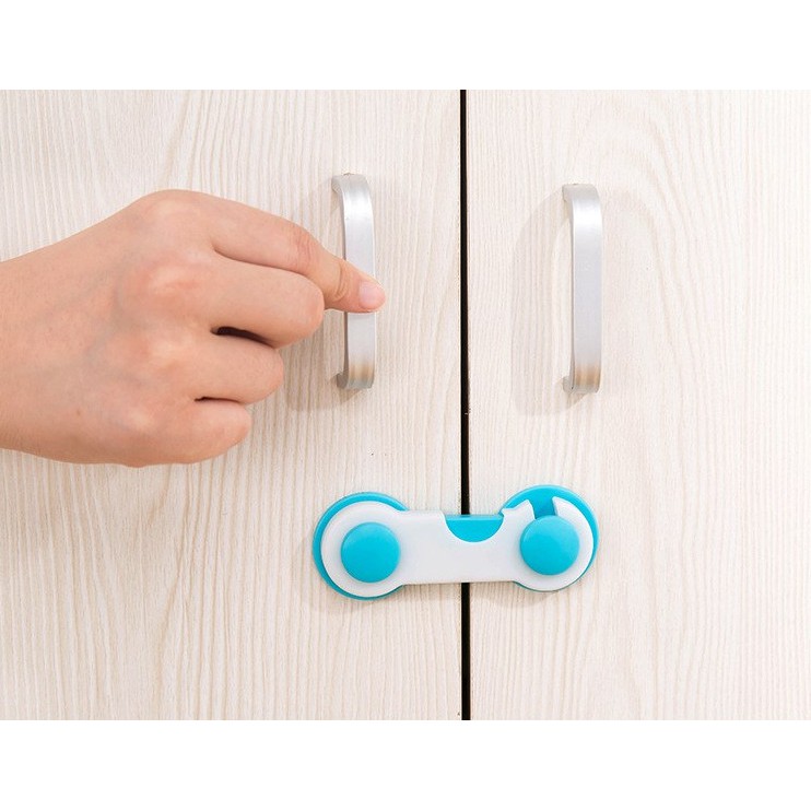 - Dụng cụ khóa tủ cho bé. Sản phẩm giữ an toàn cho bé không bị kẹp tay khi nghịch ngăn kéo, tránh bé mở tủ lạnh gia đình.