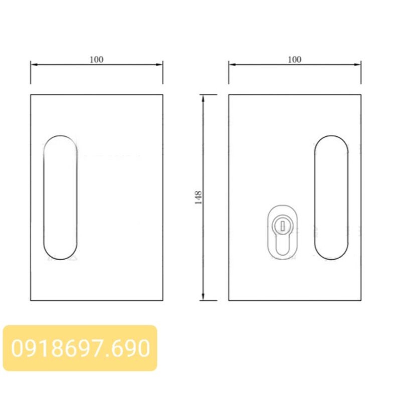 khoá cửa kính lùa Inox 304 bản vuông tay âm liền 833