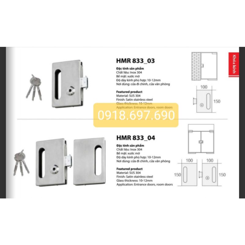 Giới thiệu khoá cửa kính lùa Inox 304 bản vuông tay âm liền 833