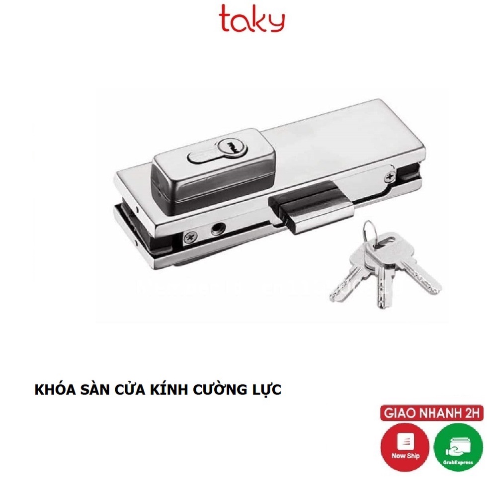 Giới thiệu Khóa Cửa Kính - Taky, Lắp Cửa Kính 10 - 12 ly, Khóa Cửa Kính Cường Lực VVP Gắn Sàn, 2 Đầu Chìa - 3701
