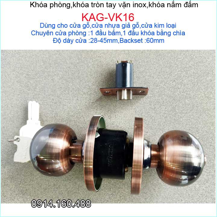 Giới thiệu Khóa cửa phòng cao cấp màu nâu đồng, khóa tay nắm tròn, khóa phòng ngủ Vickini KAG-VK16