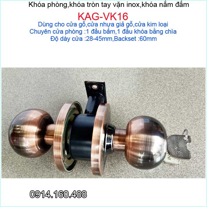 Khóa cửa phòng cao cấp màu nâu đồng, khóa tay nắm tròn, khóa phòng ngủ Vickini KAG-VK16