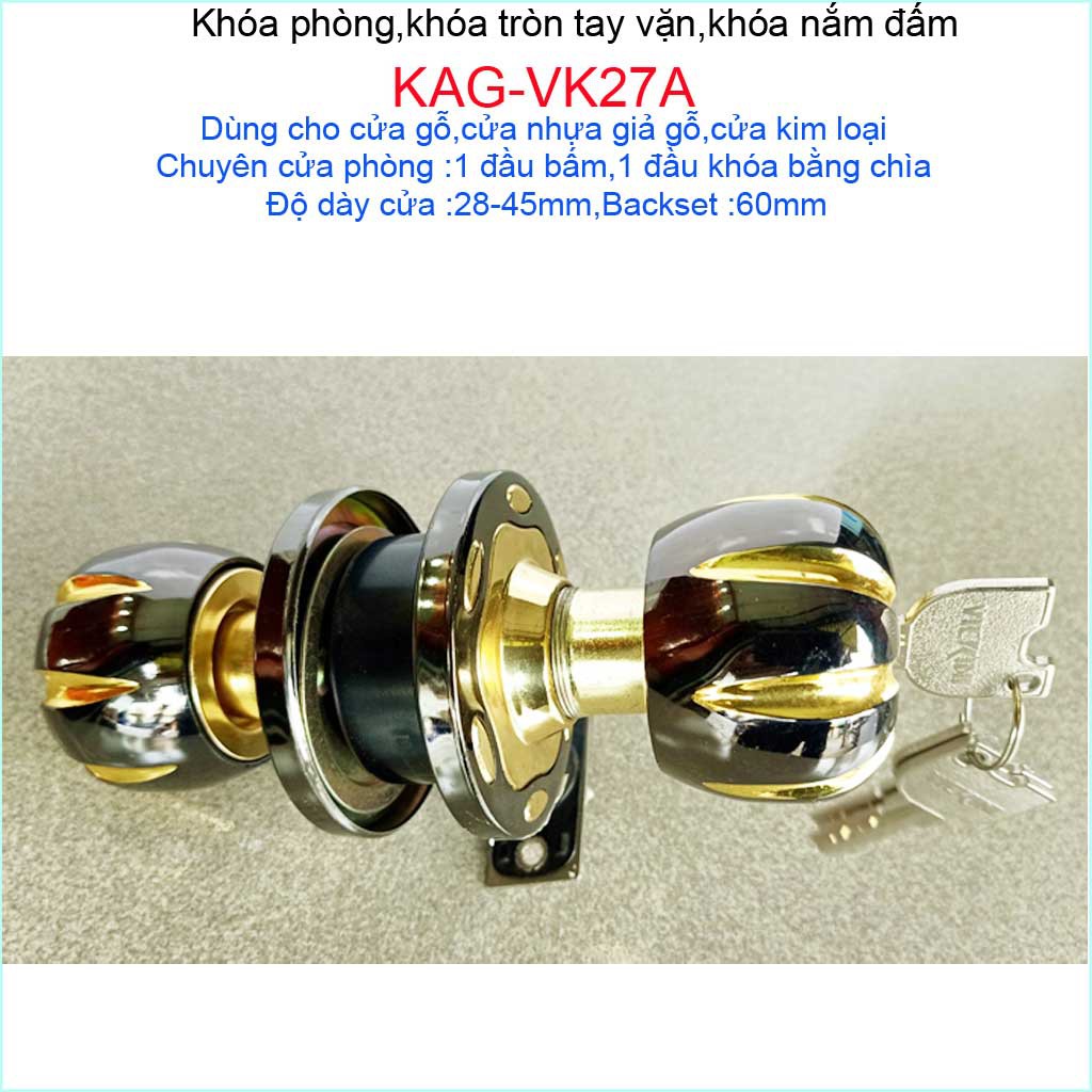Khóa cửa phòng Vickini, khóa tay nắm tròn vàng đồng, khóa phòng ngủ Vickini KAG-VK27A dùng cho khóa cửa phòng, khóa cửa văn phòng, khóa phòng tắm WC...