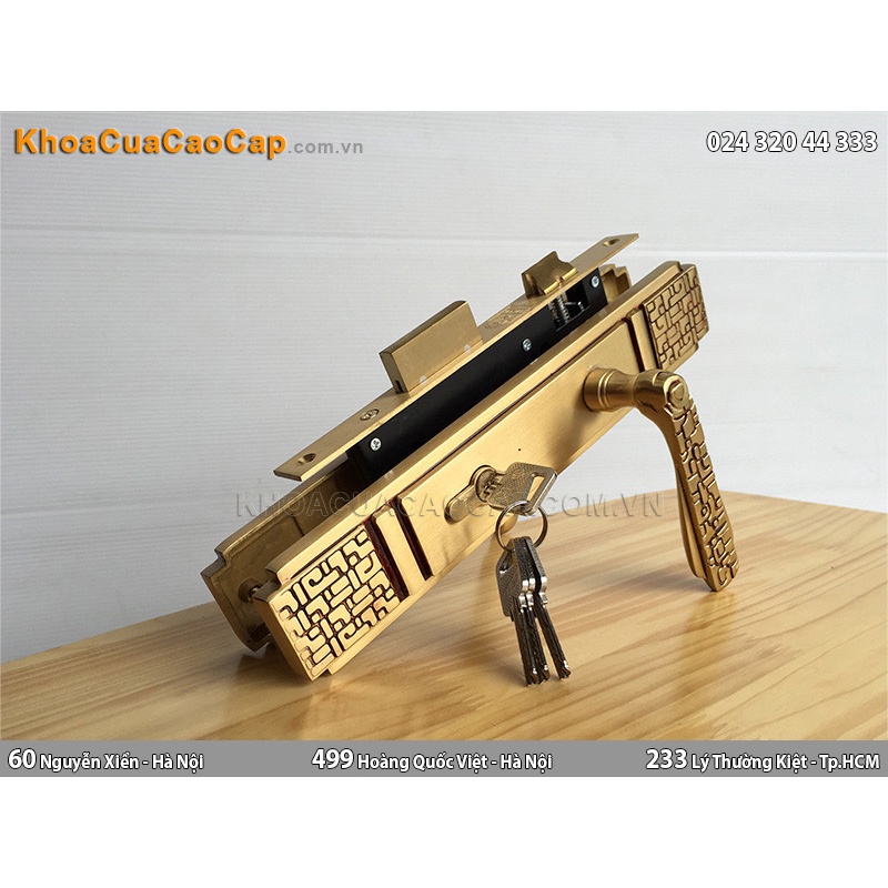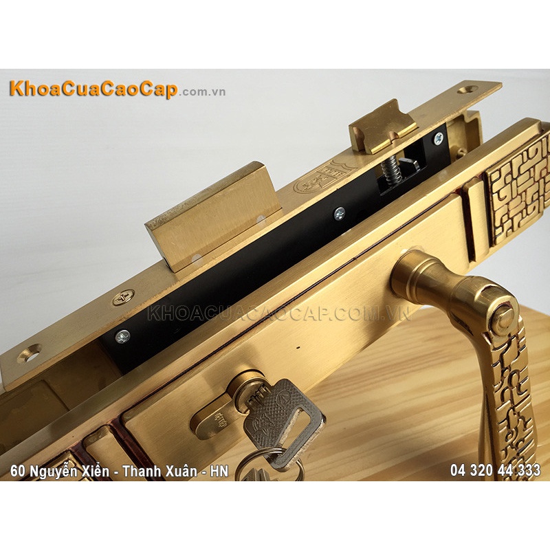 Ổ khóa làm bằng đồng vàng (đồng thau), được thiết kế chìa vi tính tránh bị trùng chìa, rất an toàn.