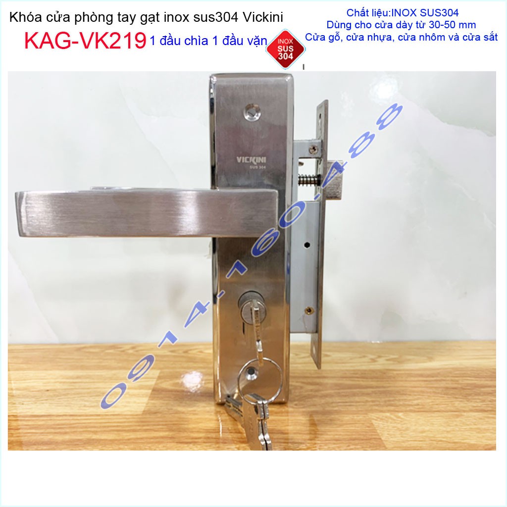 Khóa cửa tay gạt inox KAG-VK219, khóa cửa trọn bộ thân+ tay ốp + ruột khóa Vickini