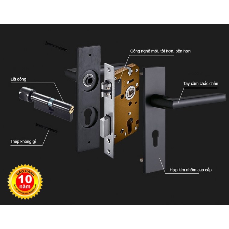 Nhà cửa & Đời sống > Bảo hộ gia đình > Khóa, ổ khóa || Khóa cửa tay nắm ngang Cobe (nổi tiếng) - Hàng nhập khẩu chất lượng rất cao (có bán buôn) Màu đen L5909Còn hàng