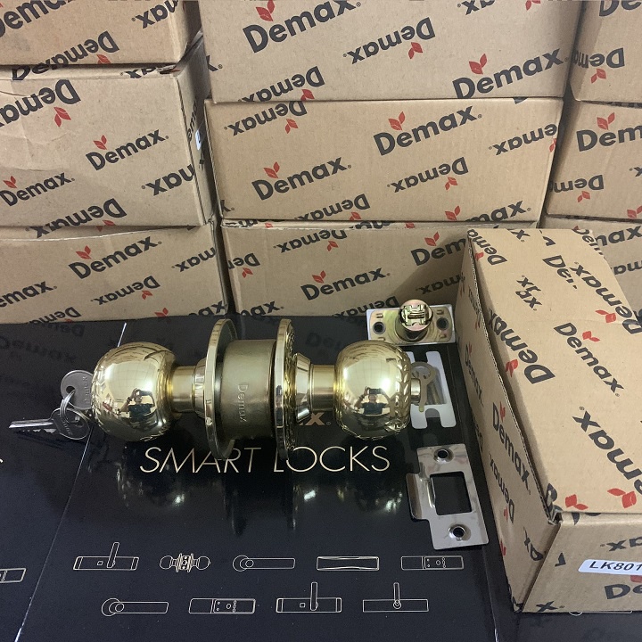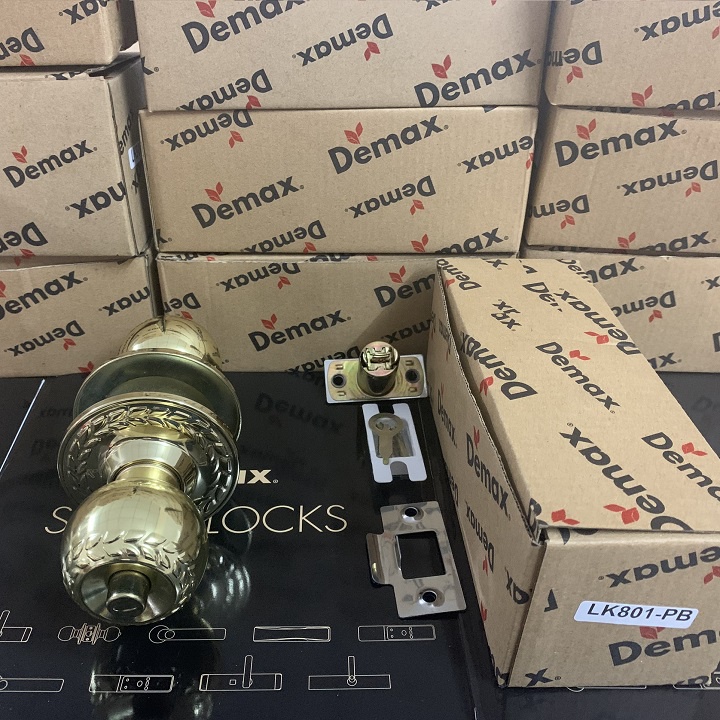 Ổ Khóa cửa tay nắm tròn Demax LK801 PB Loại khóa này có ưu điểm là dễ sử dụng và dễ lắp ráp nên được người tiêu dùng Việt Nam ưa chuộng