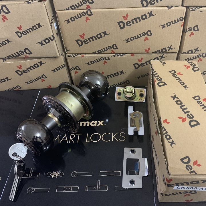 Ổ Khóa cửa tay nắm tròn Demax LK500 AC Loại khóa này có ưu điểm là dễ sử dụng và dễ lắp ráp nên được người tiêu dùng Việt Nam ưa chuộng