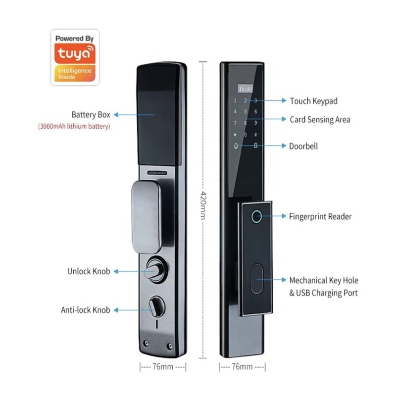 - Cài đặt được 100 mật khẩu, 300 thẻ từ và 300 vân tay.