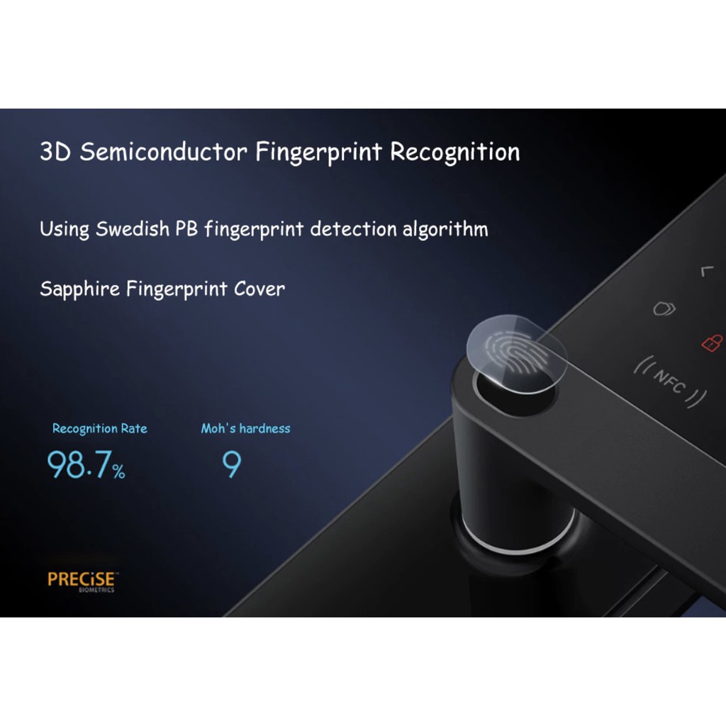 + Mở khoá bằng NFC (tích hợp trong cách vòng tay, đồng hồ thông minh, điện thoại thông minh của Xiaomi).