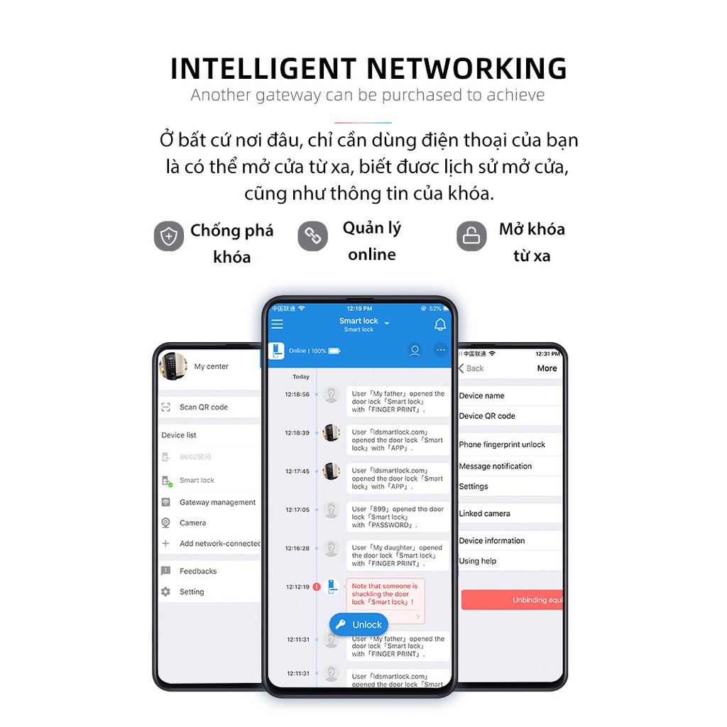 Bạn có thể quản lý từ xa khóa cửa vân tay cao cấp Tuya D1 bằng cách tra cứu lịch sử mở khóa từ xa, thiết lập các tùy chọn bằng điện thoại vô cùng đơn giản, tiện nghi. Cho bạn kiểm soát an ninh ngôi nhà của mình một cách toàn diện nhất.