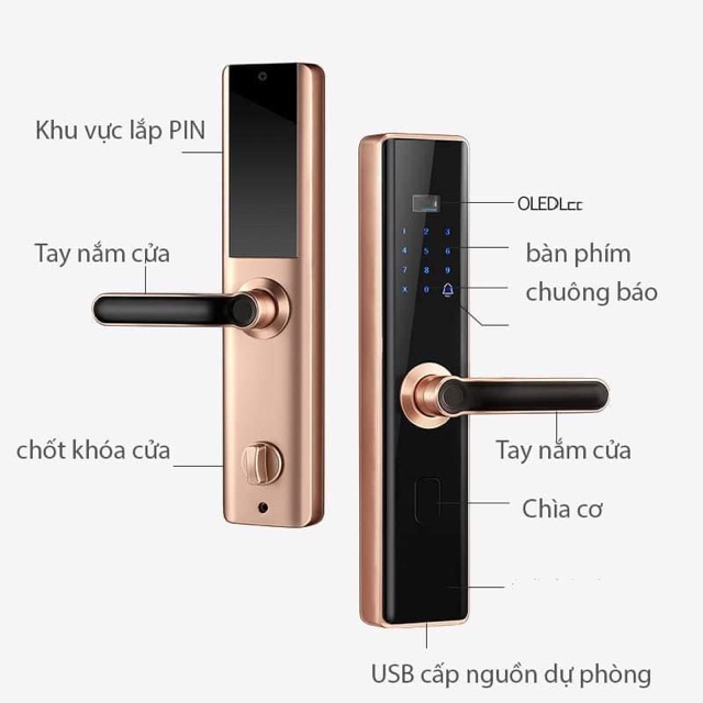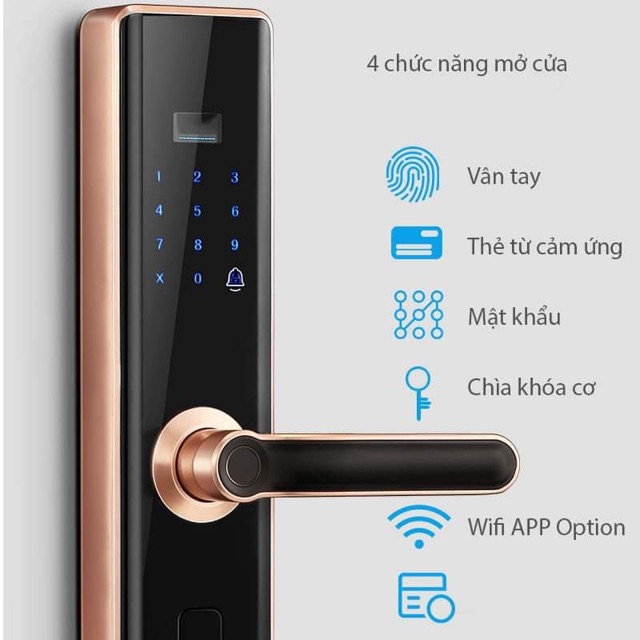 Khóa này mở khóa được 5 cách, vân tay, mật khẩu , thẻ từ, chìa khóa và appapp sử dụng wechat , khuyến cáo các bạn không nên sử dụng wechat để sài khóa