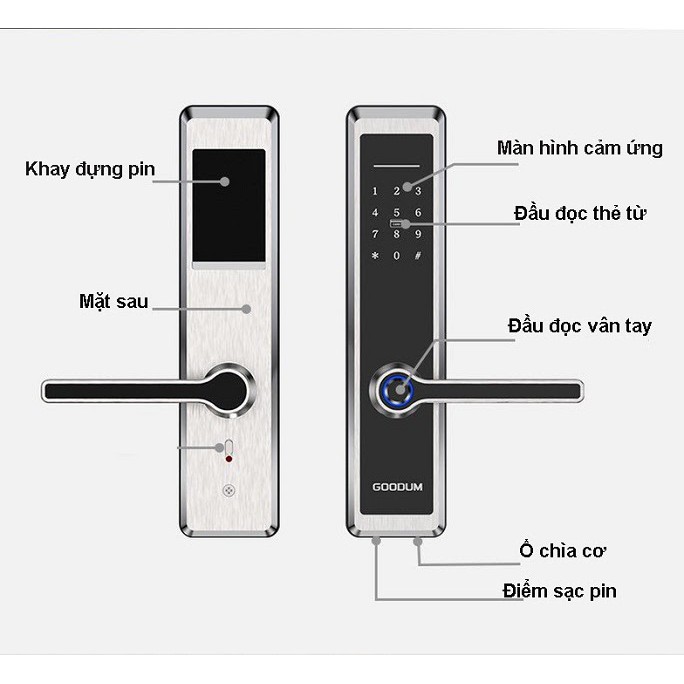 🏺🏺🏺 Khóa cửa vân tay WIFI Goodum H68T🔫🔫🔫: Vân tay, mã số, thẻ từ, chìa khóa cơ, Wifi