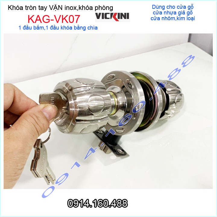 Khóa cửa Vickini KAG-VK07, khóa tay nắm tròn 1 đầu vặn 1 đầu chìa thiết kế đẹp sử dụng tốt