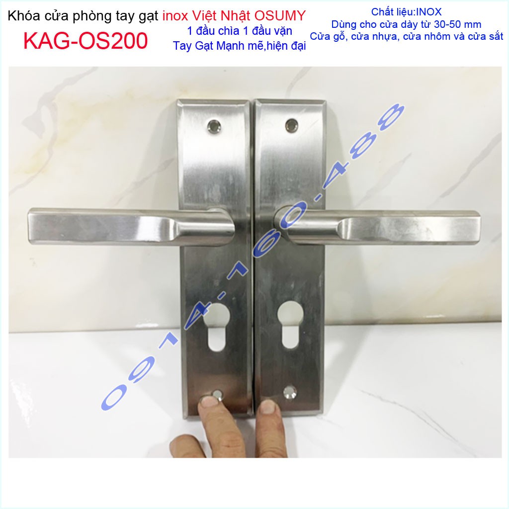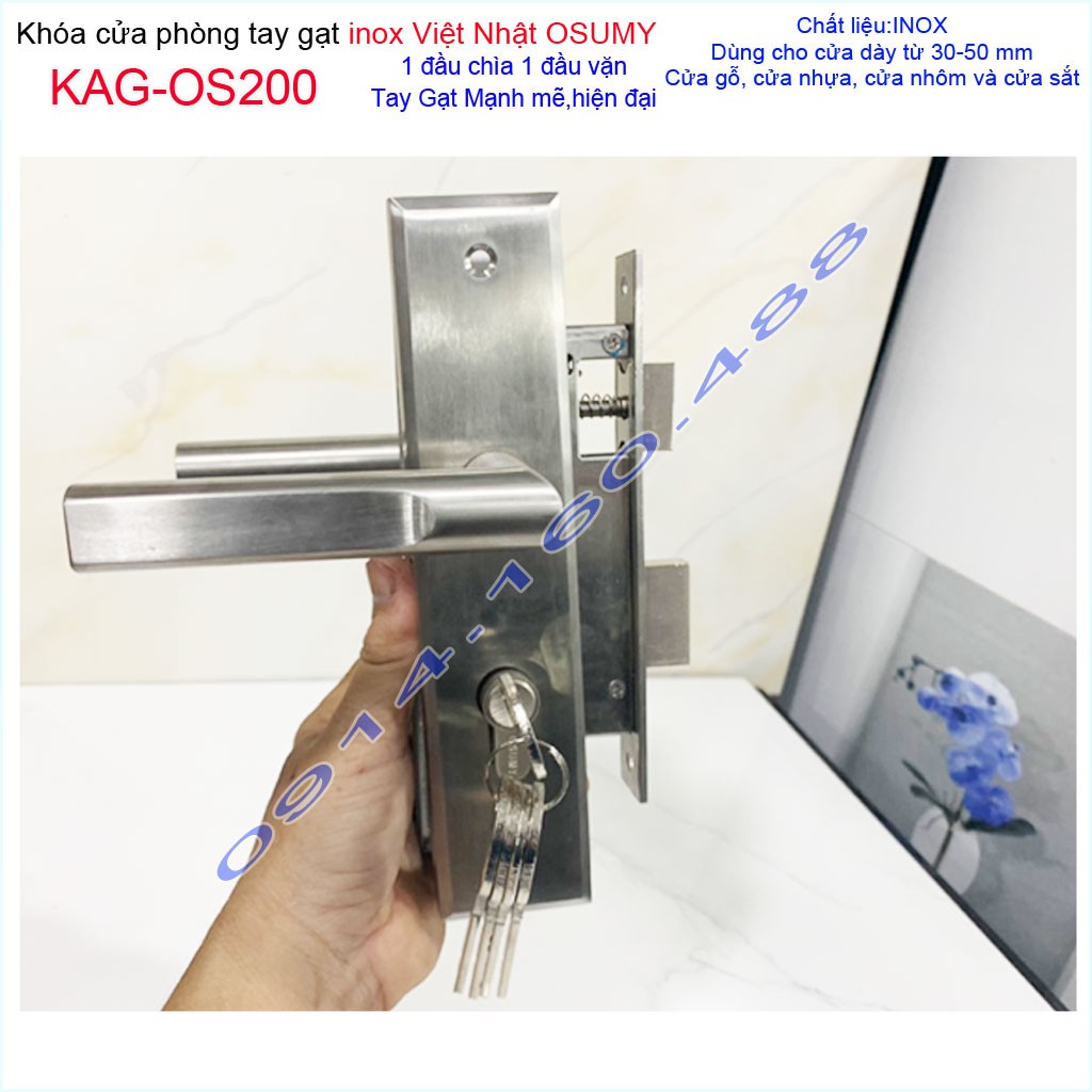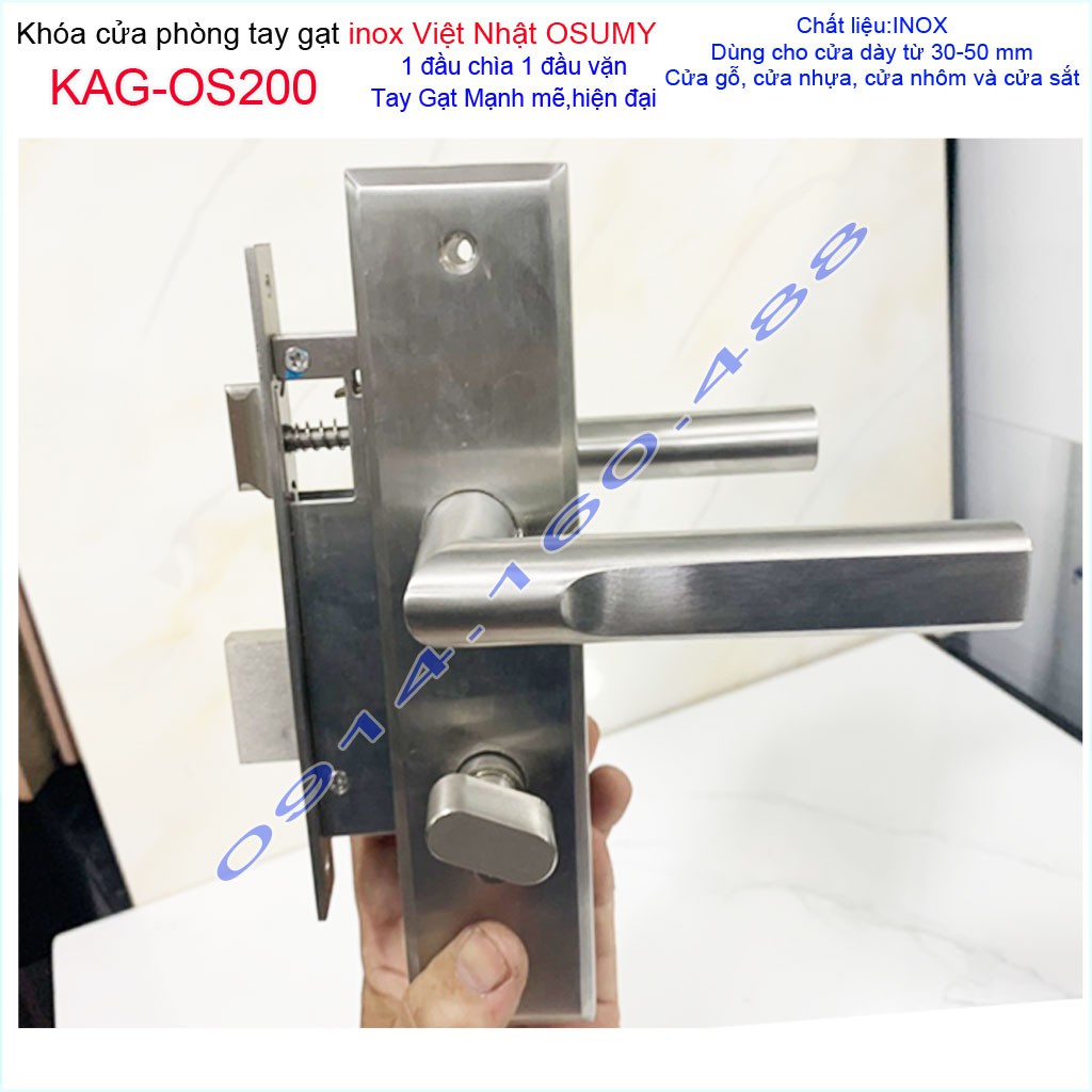 Khóa cửa Việt Nhật KAG-OS200, khóa cửa phòng Inox Việt Nhật cao cấp trọn bộChất liệu: Thân khóa Inox mờ sang trọng, ruột khóa bằng đồng
