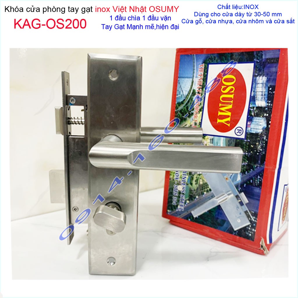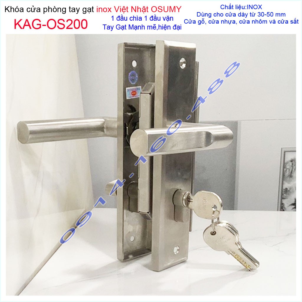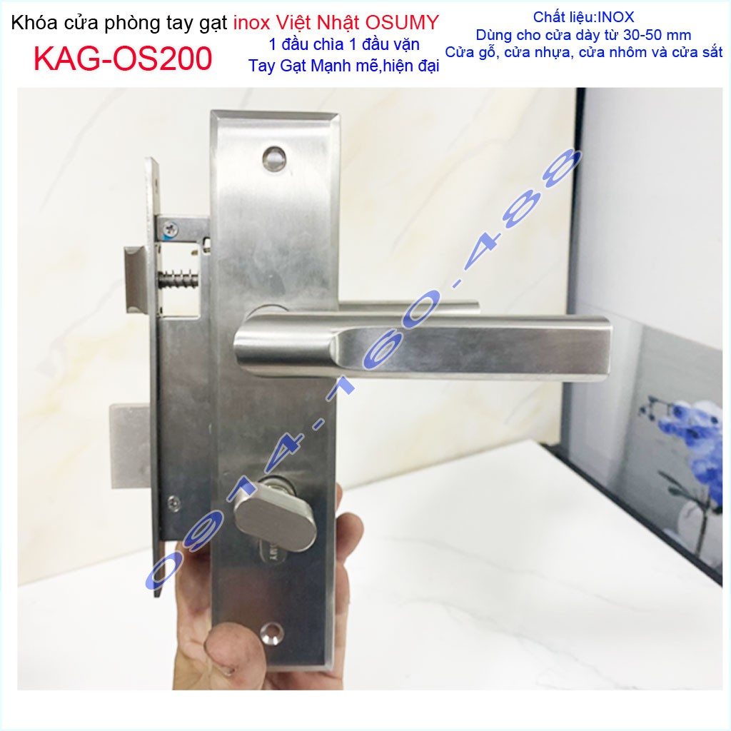 Khóa cửa Việt Nhật KAG-OS200, khóa cửa phòng Inox Việt Nhật cao cấp trọn bộChất liệu: Thân khóa Inox mờ sang trọng, ruột khóa bằng đồng