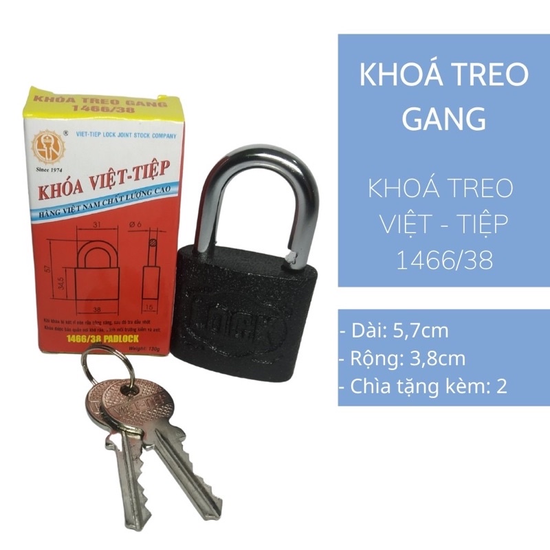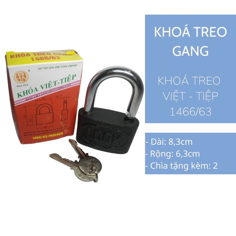 Sản phẩm khoá treo gang VIỆT TIỆP với các cỡ 6 - 7 - 8 -10Với thiết kế nguyên bản chống rỉ sản phẩm được sử dụng rỗng rãi ở nhiều điều kiện môi trường khác nhau