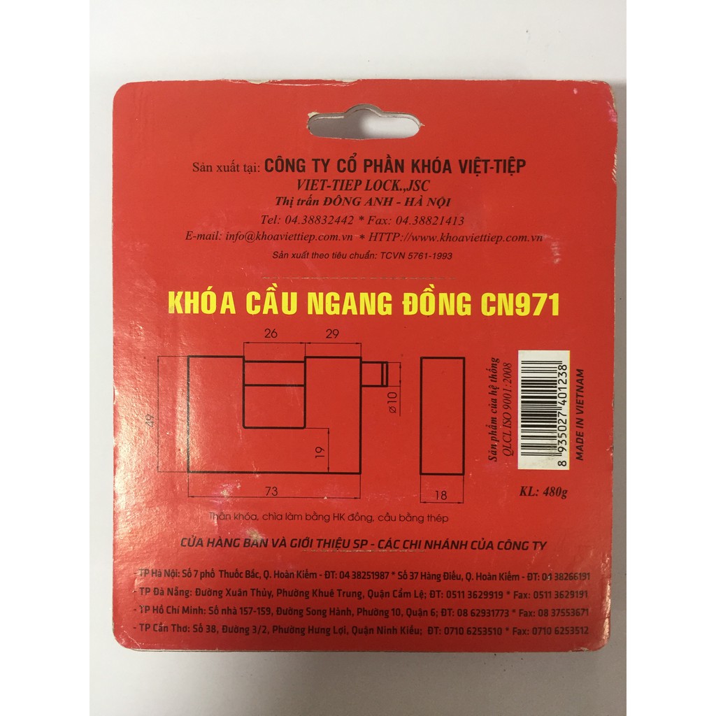 Nhà cửa & Đời sống > Bảo hộ gia đình > Khóa, ổ khóa || KHOÁ CỬA VIỆT TIỆP NGANG 971 (CHÍNH HÃNG)Còn hàng