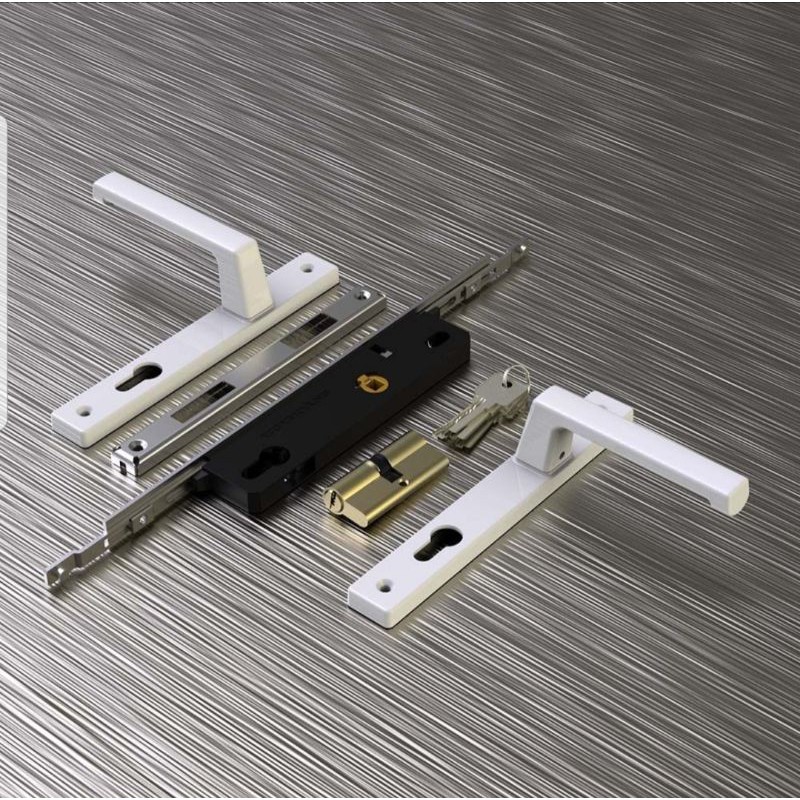 Thân khoá được sản xuất bằng nhôm đúc nguyên khối được phủ lớp sơn tĩnh điện . Then khóa bằng đồng thau , Chi tiết thân khoá được làm bằng tôn thép mạ Zn theo tiêu chuẩn quốc tế