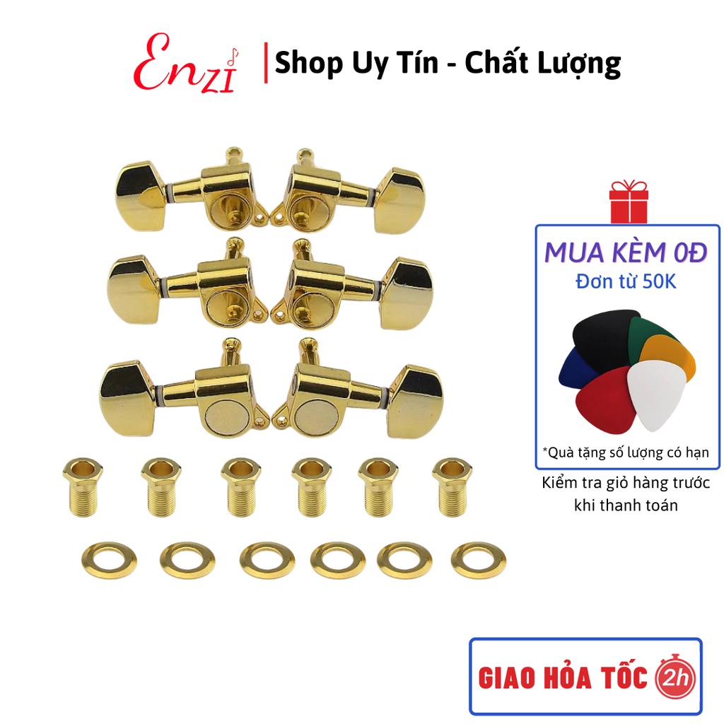Bộ khóa đàn guitar acoustic đúc đặc khóa vặn màu đen cao cấp chất liệu niken chống rỉ Enzi