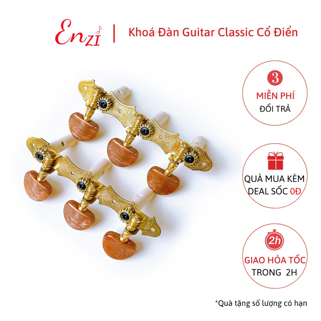 Khóa đàn guitar classic cao cấp có đủ 2 bên khóa kèm ốc vít EnziKhóa đàn guitar là phần thiết yếu của đàn guitar. Chúng giữ các dây đàn guitar trên đầu đàn và được điều chỉnh để thay đổi độ căng của dây giúp dây có được độ cao chính xác.